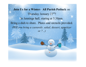 Winter Potluck- Thursday, January 22- St. Augustine